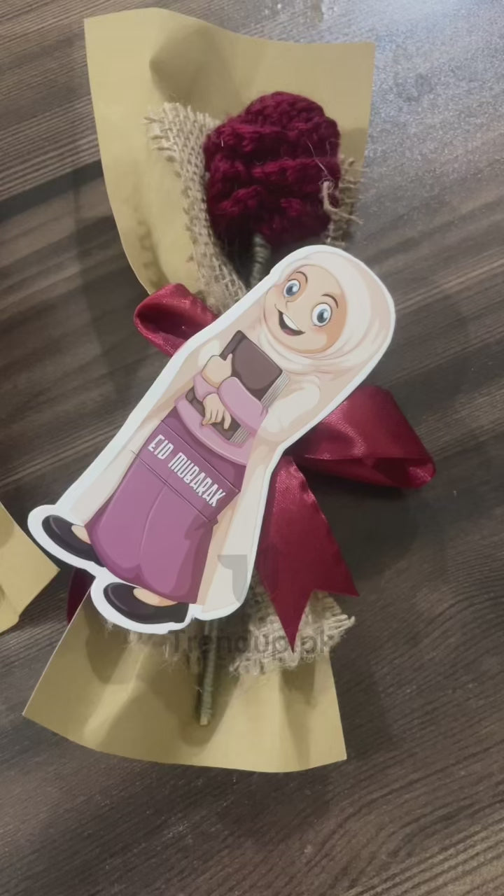 Handmade Crochet Rose Bouquet (With Free Eidi Tuckin Card)