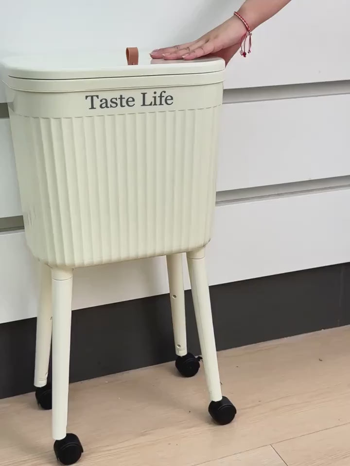 High-Legged Wheeled Trash Can with Lid